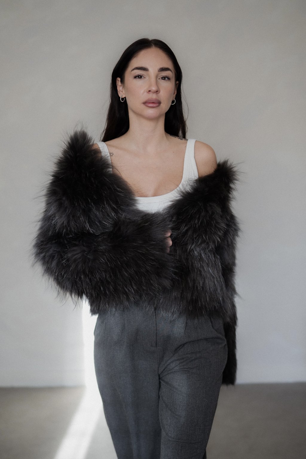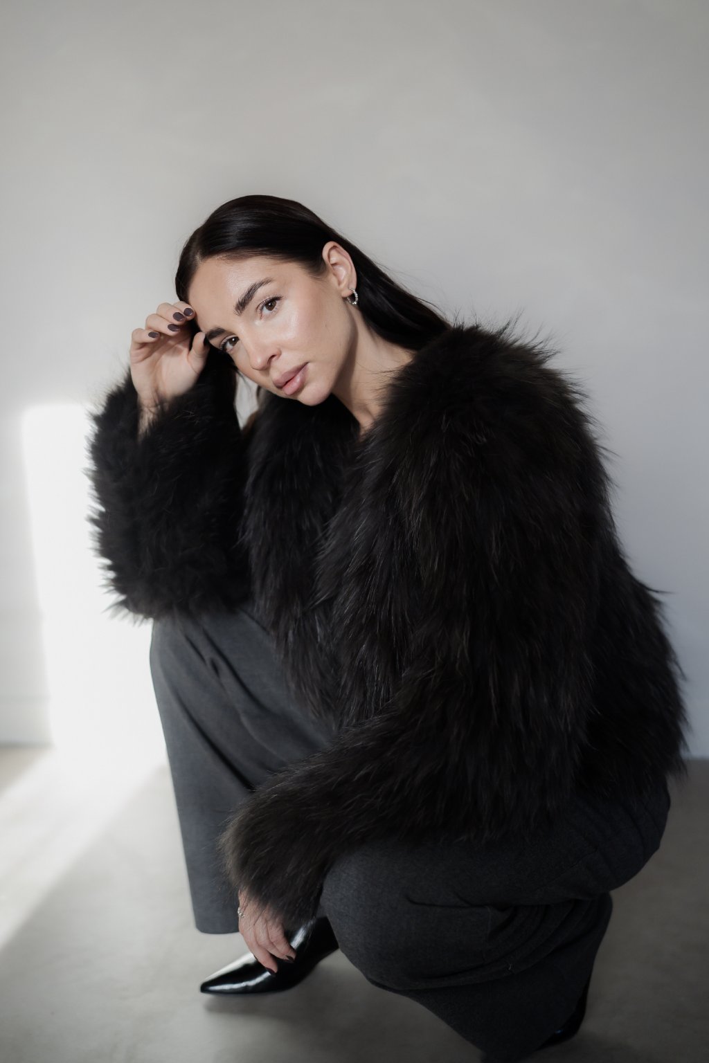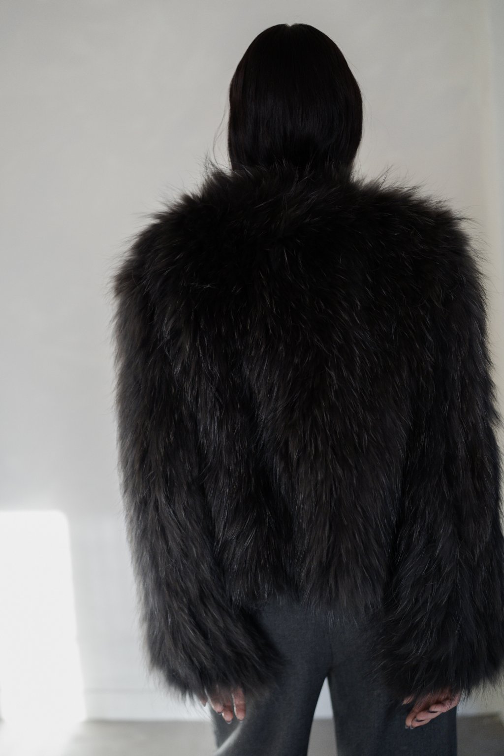 An elegant raccoon fur coat that impresses with its lightness and fluffiness. A timeless model that combines natural material and a perfect cut.