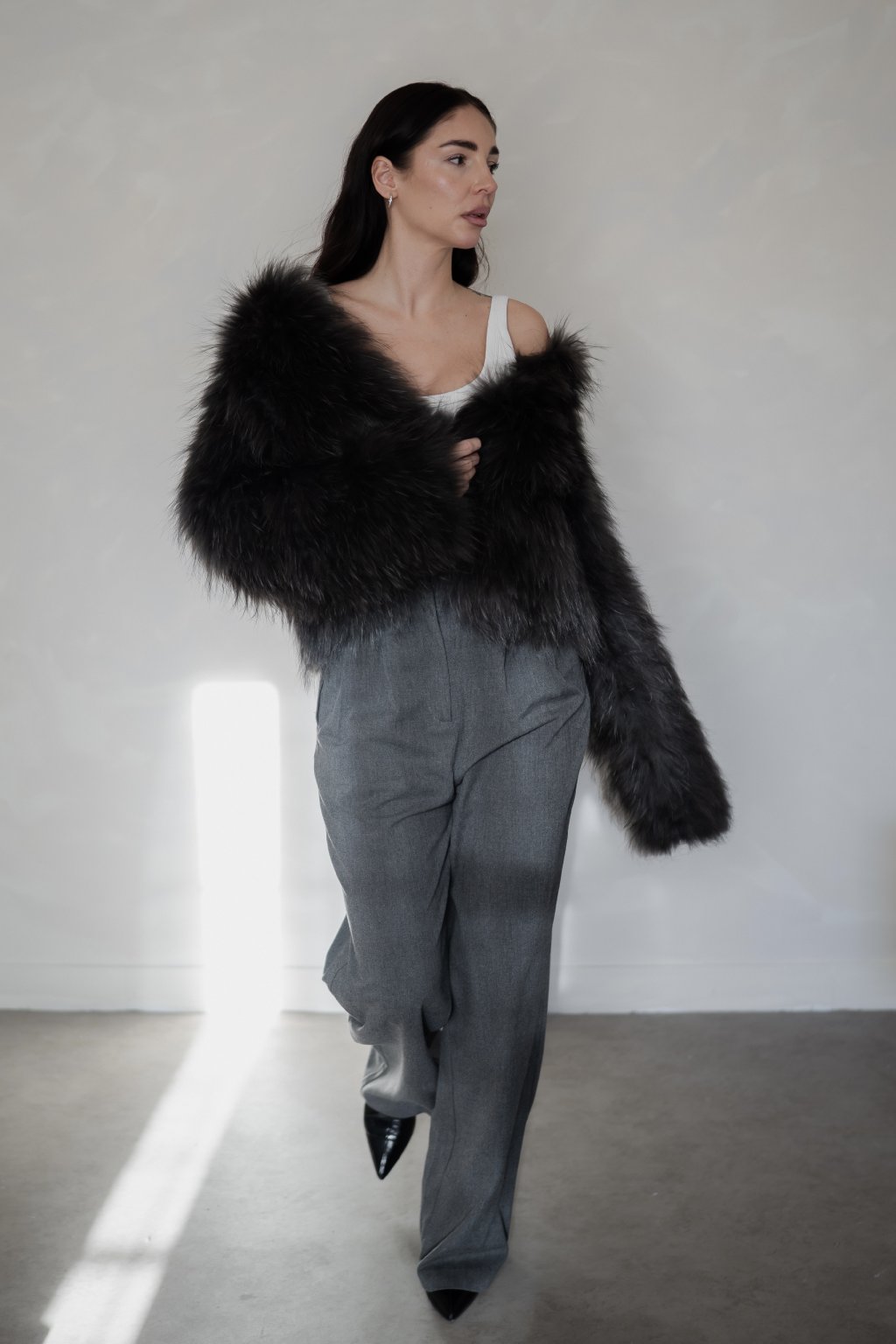 The fur is hand-knitted into a cotton grid. Each piece is precisely crafted to highlight the natural character of the fur and maximum comfort when wearing.