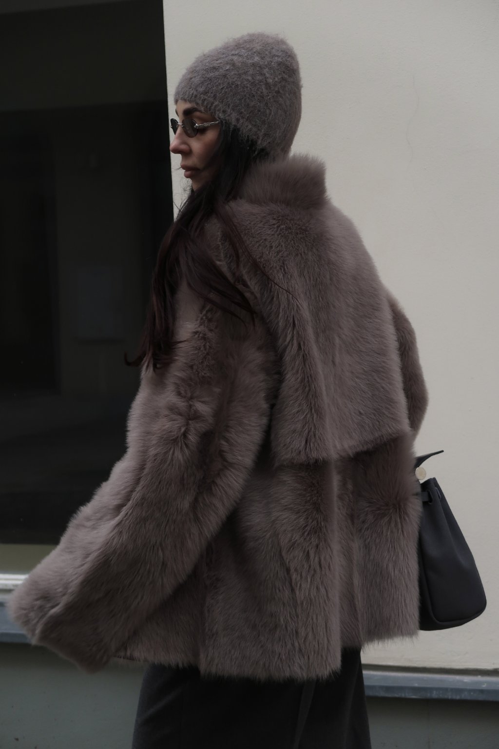 Z jedné strany jemná, hladká kůže s čistým minimalistickým vzhledem, z druhé strany bohatá, přirozeně hebká kožešina, která poskytuje maximální komfort a hřejivost i v chladných dnech. Díky preciznímu zpracování působí bunda elegantně z obou stran a zachovává si svůj luxusní charakter.