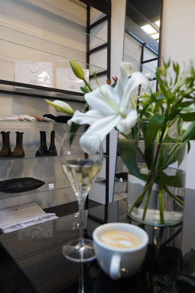 Budova, kde se showroom nachází, je označená cedulí Fine Furs.